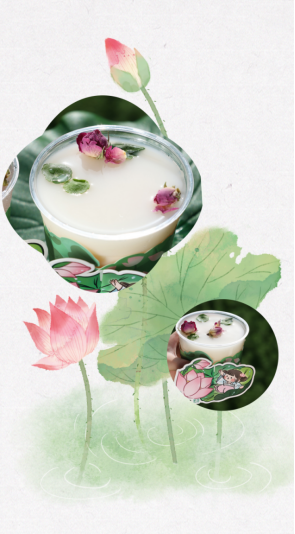 荷花、荷叶漂浮在荷塘之上……这一杯拿在手中的“荷花”意境茶,犹如一幅写意中国画卷轴。仿佛喝的不再是一杯茶饮,而是“走入”画卷之中,置身于江南荷塘之上。