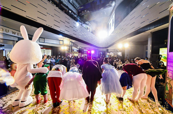 尚嘉中心将戏剧艺术从剧场搬到了商场,以极具想象力和戏剧性的方式带领大家开启一场艺术之旅。百老汇的经典音乐剧开场将奇愿剧场华丽点亮,为节日平添更多艺术气息,“特邀嘉宾”时尚兔Lapin惊喜现身,与现场400多位来宾共襄盛举。