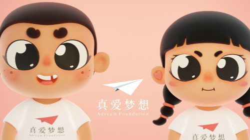 设计师李嘉乐前期作了充分调研,从真爱梦想“教育”、“梦想”、“受益孩子”等核心元素汲取灵感,选择适当放大了IP形象的“眼睛”,希望通过“眼睛”传递孩子们的纯真与快乐,以及对未来的好奇与渴望。同时也希望这两个“孩子”可以给基金会服务的数百万孩子带去快乐,跟随真爱梦想到更多地方帮助更多孩子。