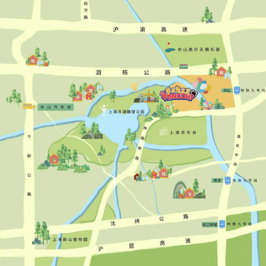 月湖 · 季高兔窝窝PANCOAT乐园位于上海市佘山国家旅游度假区月湖雕塑公园内,东西两侧紧邻佘山自然山林胜地,这里山地钟秀、林木葱郁、动植物资源丰富,吸引了大量游人前来观光游览,近几年年均客流量均达180万人次以上,形成显著的聚集效应。