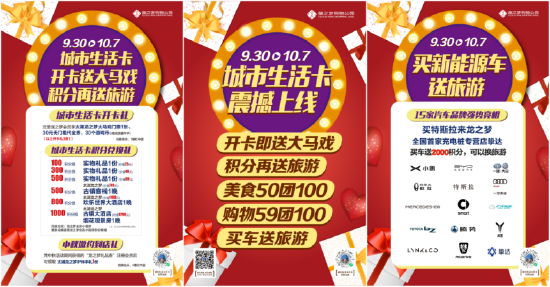 9月30日-10月7日,长宁龙之梦城市生活卡也将震撼上线,长宁龙之梦联合全场零售及餐饮业态为新能源汽车赋能。全场造势,大力推出买新能源车送旅游活动,沪上最大新能源街区,15家汽车品牌强势亮相,买车即送太湖龙之梦旅游,狂揽2000积分。