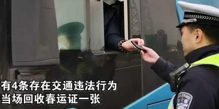 交警暗访春运大巴 一辆车因多个违法行为被收回春运证