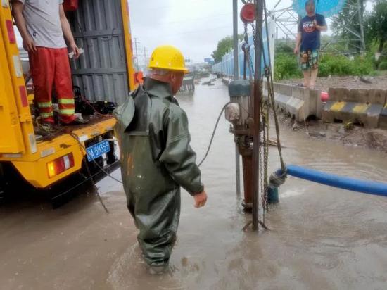 小布在龙东大道靠近内环线的路段看到,数台泵机正在紧张地对这里的积水路段进行抽水,确保道路恢复通畅。