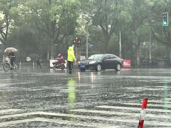 暴雨倾盆的上海 他们是大雨中最可爱的人