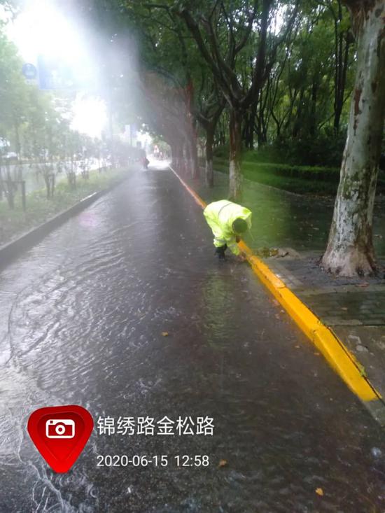 暴雨和周一早高峰“双碰头”,不仅造成了一定范围的拥堵,在龙东大道沿线还出现了道路积水和车辆抛锚,区应急管理部门紧急行动,抢排积水脱离被困车辆,确保道路安全。