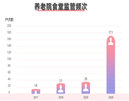 据统计,截止目前,航头镇辖区养老院食堂上半年度的监管频次已远远超过了前三年监管频次的总和。另外,通过智慧监管场景的应用,每户次平均耗时从传统监管模式的48分钟左右大幅度下降到了每户次5分钟左右,大大提高了监管效能。