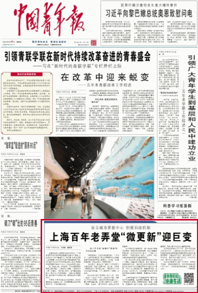 中青报头版聚焦上海城市的更新:百年老弄堂迎巨变