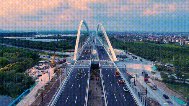 伴随着两港大道快速化工程北段跨临港大道景观桥最后一段桥面沥青铺装完成,标志着项目跨线桥桥面铺装圆满收官,工程主线结构已全部贯通,为项目建成奠定了基础。