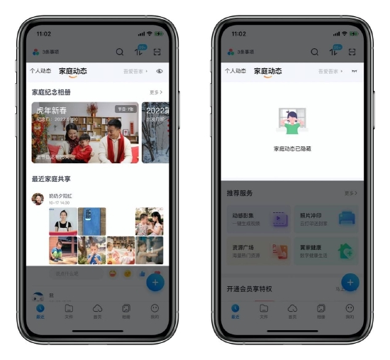 此外天翼云盘还又不少呵护用户隐私的“敏感信息遮蔽”设计体验,十分贴心。天翼云盘的“家庭动态支持隐藏”,家庭动态是天翼云盘基于家庭共享的家庭成员时间线,类似于家人之间的朋友圈,特别适合晒娃的家长。由于位置比较突出,在公共场合刷“家庭动态”,对于隐私敏感的用户,也会有些顾虑。“家庭动态支持隐藏”的设计,可以点击“眼睛”关闭起来,这个体验细节的设计,体现了对用户隐私的格外关切。