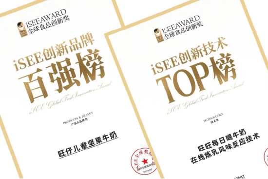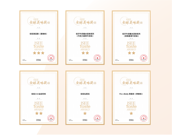 5月9日,第六届iSEE创新盛典暨iSEE之夜颁奖典礼在沪举行,旺旺集团斩获多项殊荣。其中,旺仔儿童坚果牛奶荣登“iSEE创新品牌百强榜”, 每日喝牛奶荣登“iSEE创新技术TOP榜”, 旺旺豌豆酥(香辣味)荣获“iSEE全球美味奖”三星,旺仔牛奶糖冰淇淋系列(草莓香草牛奶味与巧克力香草牛奶味)、旺旺小小运动饮料荣获“iSEE全球美味奖”二星,旺旺仙草冻、Fix XBody燕麦奶荣获“iSEE全球美味奖”一星殊荣。