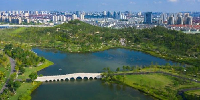 2024年9月9日,上海,位于世博文化公园内的双子山苍翠葱茏。视觉中国 图