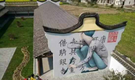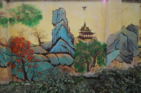 仓城历史风貌区跨塘桥和大仓桥之间约300米长的市河驳岸近日重新“梳妆”,白墙涂上了被以传统山水画为主题的特色涂鸦。涂鸦墙位于市河南岸,画中,树木峥嵘,亭台楼阁,一泊孤舟之上,渔翁宁静闲适。画风与墙后的民宅融为一体,虚实结合间,仿佛将这些明清风格的老宅也融入了画里。