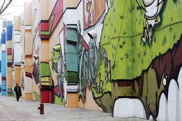 忧郁的刀刀狗、俏皮的马丁……一幅近1000平方米的涂鸦墙出现在大场镇汶水路沪太路口。这也标志着全国首条以动漫生活为主题的特色街——汶水路动漫街正式对外开放。这里的涂鸦墙被称为世界上最大单一主题的涂鸦墙,国产动漫形象是这里的主角,墙上也不乏众多前卫独立的现代抽象元素,道路两旁的水泥墩和保安亭也被改造成了卡通瓢虫和蘑菇房。