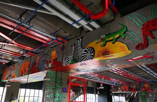 进入秀沿路地铁站,内部装修超童趣,红色系的动物墙绘热情满满,猴子、狮子、老虎、斑马、大象、鳄鱼……仿佛来到了野生动物园~ 候车区找对角度拍照也很赞。