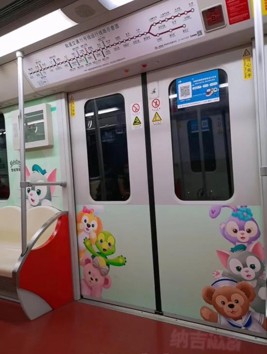 迪士尼站点设计轻松可爱,处处都有伙伴们的身影,在2019年度“最美地铁站评选”中,迪士尼站还荣获了“最佳主题设计奖”呢~最近的11号线部分列车更是配合活动,装扮成了“达菲”主题,每个车厢都是不同的崽崽。