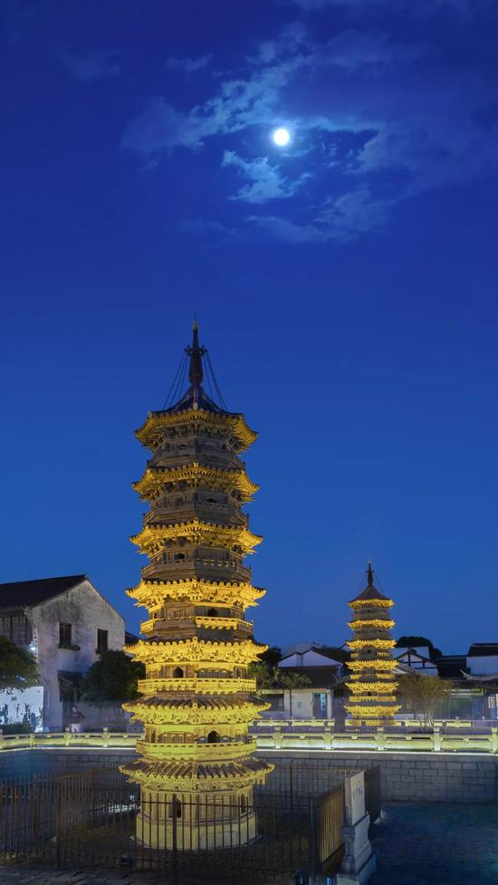 一定要到老街上走一走,看看双塔,听听留云寺的钟声,伴着吴侬软语走过八字桥,感受当下的美好。