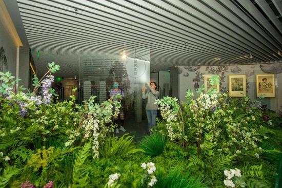 展览现场,通过石库门墙面、雕花栏杆、老式家具等布置,营造了沉浸式观展氛围,让观众宛如穿越回上世纪三四十年代的上海生活场景之中。