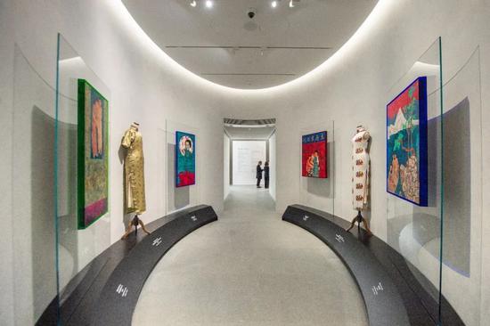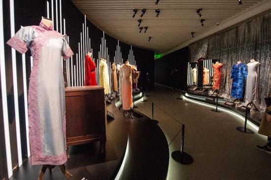 此次展览还有“时尚潮流”部分的展示。张信哲挑选出一批古董服饰收藏,观众可看着月份牌画稿,寻找同款旗袍服饰,了解月份牌背后的时尚潮流更迭。