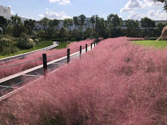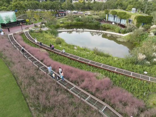 此外,除了“网红”粉黛乱子草,公园内还种植了银杏、北美枫香、红花槭、无患子、栾树等秋色树种,以及数十种观赏草,共同营造秋日里的斑斓美景。