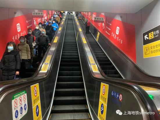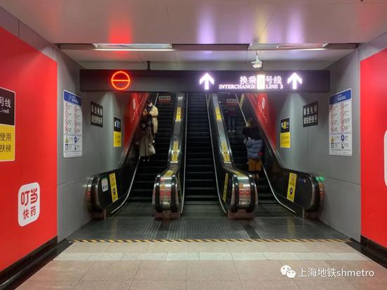 3、8号线虹口足球场站换乘通道自动扶梯恢复使用啦