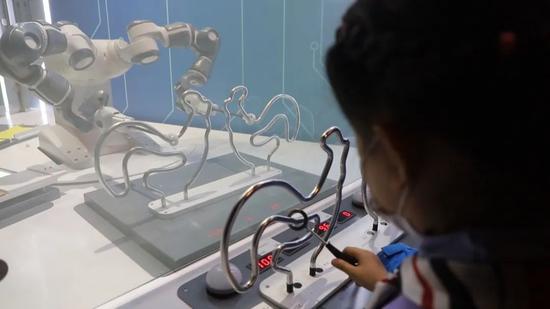 上海科技馆展品上新 来和机器人比比穿针引线