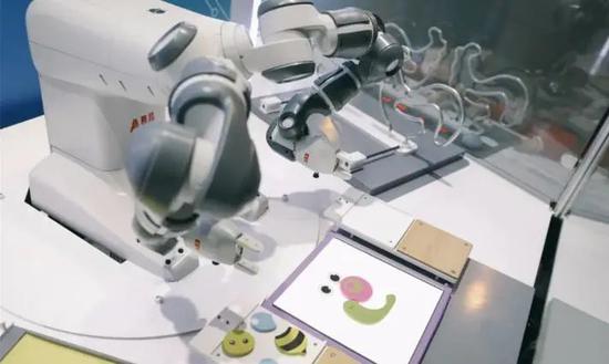 小布了解到,这台新上岗的机器人是跨国企业ABB的当家产品。和普通机器人相比,它的双臂和人类手臂更接近,不仅自由度更大,且不易对人造成伤害。加上新一代的机器视觉技术,该机器人如同添上了双眼,可实现自动识别,还能与游客玩拼图。与此同时,机器人折纸表演、音乐指挥等互动项目都已进入调试阶段。未来,结合环绕式的大屏及全息投影技术,该展区的互动氛围也将进一步提升。