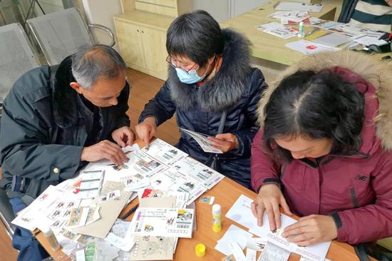对老奚和朋友们来说,邮票到手的喜悦还要第一时间和朋友们一起分享。找到一张空桌子、打开随身带的文具袋、铺开准备好的纪念封和明信片……邮迷们现场贴起了邮票,忙着给全国各地的邮友寄去新春祝福。