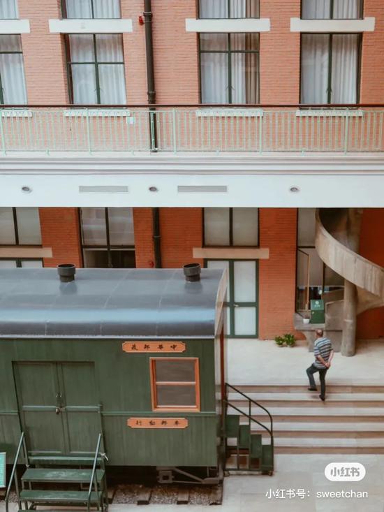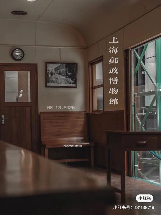在邮政博物馆宽敞明亮的中庭内有一辆标有“大清邮政沪局”字样的马车模型静静地伫立着。