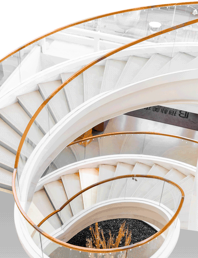 楼梯层层螺旋上升,从透明玻璃窗照入的暖阳挥洒在白色的台阶上,对着满眼纯白的高冷空间,光与影的艺术结合,从不同的角度,或仰视或俯视,都显得美轮美奂。置身其中,随手一拍就是网红大片。