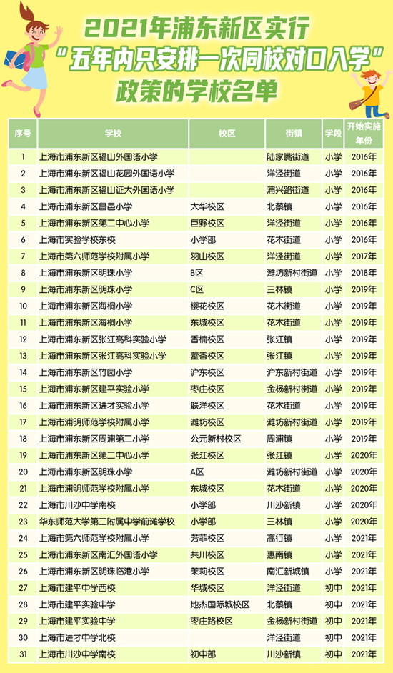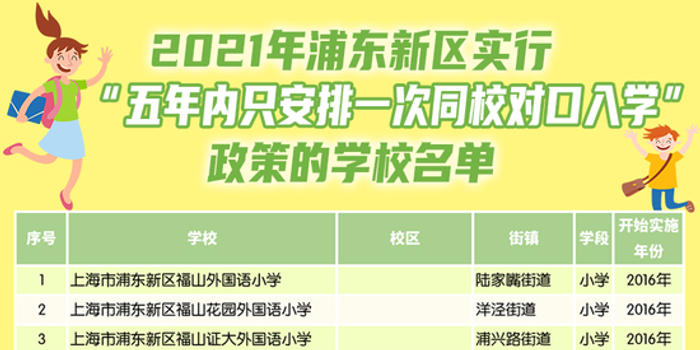 关注原标题:关注!今年这些浦东学校“五年只安排一次同校对口入学”