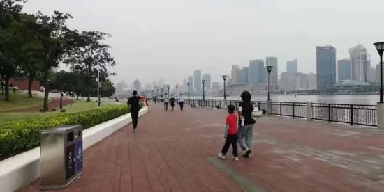 黄浦江边的滨江大道公园也恢复开放。作为一个开放式的公园,长度约为1.5公里的滨江大道公园以江景、金融城景观为主,吸引的主要是附近工作的白领和居民。公园管理人员孙佳斌说,公园平日最大承载量是8100人,根据疫情期间50%的比例,园内同时游玩人数超过4000人会采取大客流限流,“不过开园首日人流量并不大。”