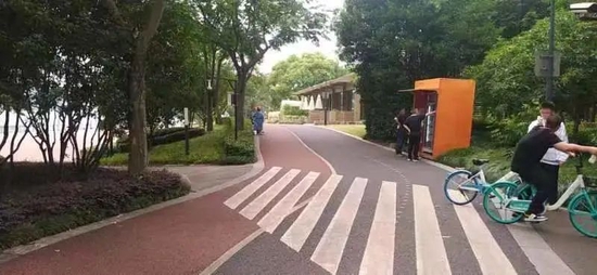 由于当天是工作日,带着儿童的老人成为游园主力。张敏说,公园禁止儿童滑板车进入公园,因此游园市民把滑板车统一存放在公园入口处,形成了一个独特的风景。而在公园内,尽管儿童游乐场、篮球场等设施因疫情尚未开放,但能够铺放野餐垫、玩球的大草坪,以及能够喂鱼的金莲湖,都足以让孩子们玩得不亦乐乎。