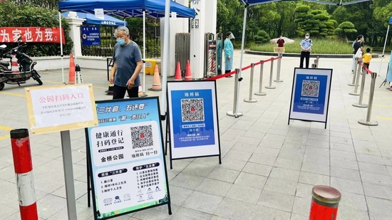 在位于金桥社区的金桥公园,早上8点开门后两个小时的时间内,就有2000多名游客入园游玩,而截至下午2点,入园总人数达到了约4500人。公园管理人员张敏告诉小布,按照新区绿化部门要求,公园全天入园人数限制在最大承载量的50%,“金桥公园正常时期的最大承载量是1.3万人,因此我们按照6500人的标准开放。”