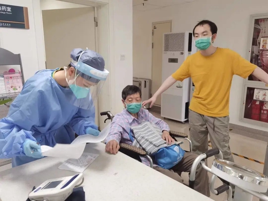此时,第一位住院病人已经安顿好了。病人患的是尿结石,病人的女婿刘海健说:“她的结石比较大也比较特殊,需要两次手术才能做完。周浦医院之前是定点医院,我们真是心急如焚。”6月19日,医院试运行,刘海健抓紧时间给丈母娘做好了核酸,第二天第一时间入院。