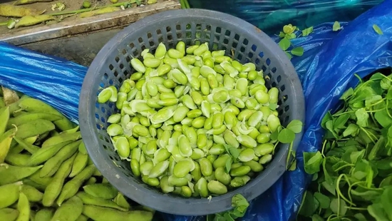 “牛踏扁”色调碧绿,上面布满极细的嫩毛,在每一豆壳里,都均匀地生着三粒毛豆,豆形长圆扁平,豆色嫩翠而新鲜,吃起来饱满嫩糯,鲜美爽口,是毛豆中最好的品种。