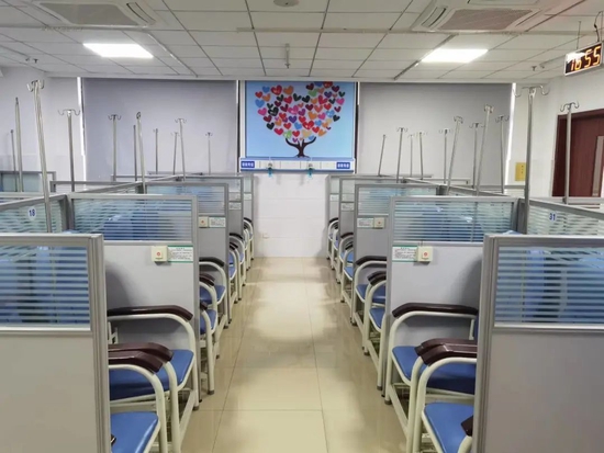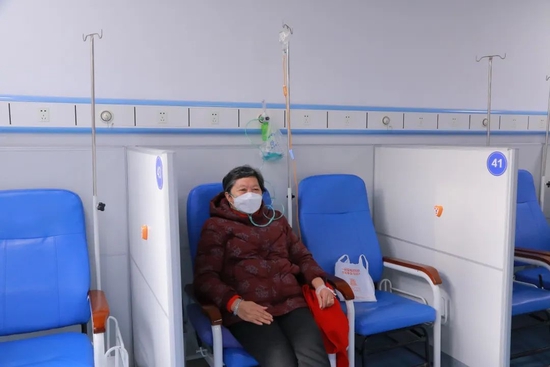 顾奶奶的输液位是坐着的,座位上还可以同时进行吸氧。当值的医生王文红说:“这是我们第一批开放区域,可以同时进行输液和吸氧。”为了应对就诊高峰,花木社区卫生服务中心的输液区今年第一期扩增到64个输液位、64个吸氧位。中心副主任张莹透露,二期还可以扩增到96个输液位、96个吸氧位,为轻症患者提供输液服务和吸氧服务,保障居民医疗救治需求,缓解上级医院就诊压力。