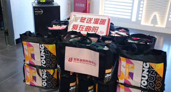 活动最后,主办方向“小哥”们送上新春礼包,礼包里装有年货、保暖用品及防疫用品。