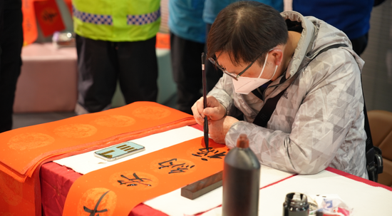 活动现场,特邀的书法家现场挥毫泼墨,书写春联、写福字,为“快递小哥”“安保小哥”送上新一年的美好祝福;和平眼科志愿者为大家提供眼健康知识咨询服务;来自同济科技园虹口园党群服务站的摄影志愿者则为“小哥”们拍下新春照片。