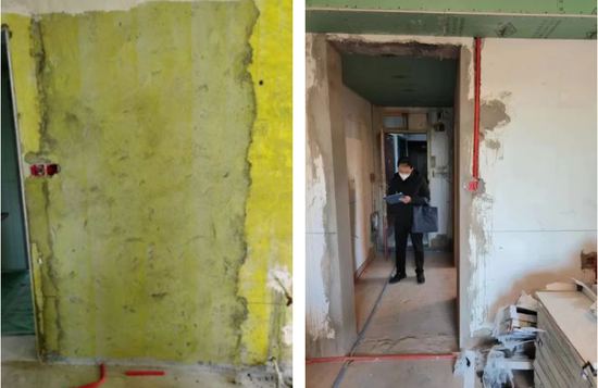 近日,江湾镇街道综合行政执法队接到投诉称,辖区某房屋有损坏承重墙的嫌疑,可能会影响房屋安全。执法队员接报后,立即前往检查,发现该房屋有两处墙体被拆除,分别位于客厅、阳台连接处和客厅、卧室连接处。