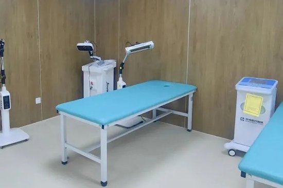 康复治疗大厅设有康复诊室、康复评估室、物理治疗(PT)区、作业治疗(OT)区、言语吞咽治疗(ST)区、盆底肌康复区、感统训练区等;在基本康复设备基础上,中心还引进了上下肢、腕关节、踝关节康复机器人、步态训练仪、平衡功能检测训练仪、数字OT评估与训练仪等先进的智能康复设备。