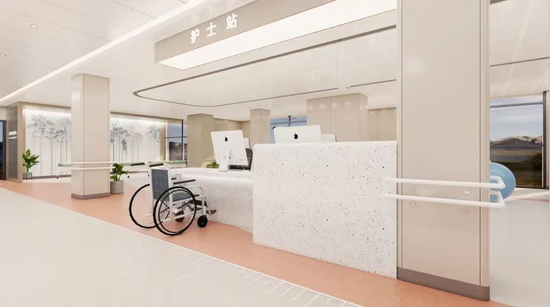 康复病区设置功能病床20张,环境宽敞,均匹配符合《无障碍设计规范》要求的卫生间和浴室。重度患者的病房配备移动式天轨及床边下肢主被动训练系统等现代化康复辅助设施,满足康复需求的同时,极大提高了康复病房患者搬移的便捷度和舒适度。