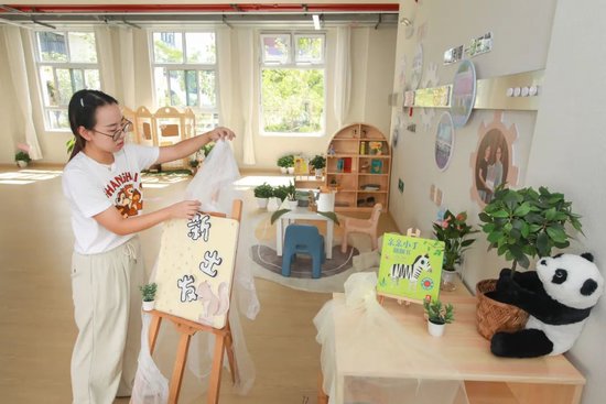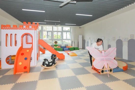 3个小班和1个托班的教室均已准备就绪,全软包的感统室,可以为托班幼儿提供安全又有趣的室内运动环境。园长张瑛介绍,鹤雷部的第一批教师大多为高年资的成熟幼教,其中不乏有二胡等才艺特长的优秀教师。基于鹤沙部已有托班开设经验,园方为鹤雷部派出了有多年托班带教经验的教师和保育员,为首批18名2-3岁幼儿提供最柔软的服务。