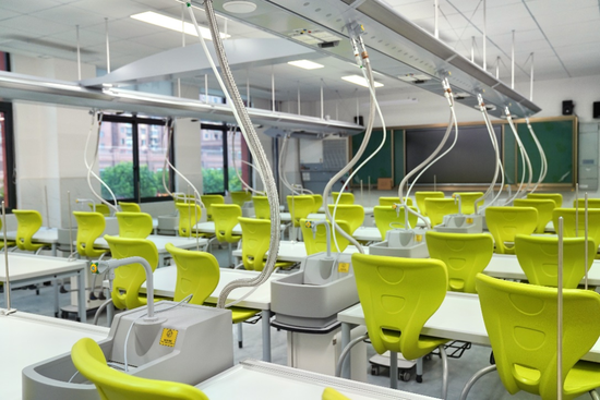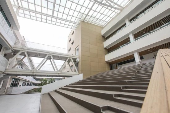 妙川路校区的设计规模为36个班级,校园内配置了各类专用教室、实验室、小剧场等。图书借阅处、学生喝水休息处、个人储物处等空间的人性化设计,既能满足高中生学习、休息、社交的需求,也能回应他们对个人独立空间的渴望。