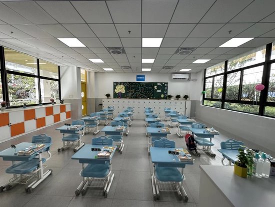 在这个办学规模为30个教学班的小学校园里,小布发现了不少全新设计理念创造的新空间。二楼通往三楼的中庭区域,宽阔的台阶高低错落,目力所及能看到教学楼内的大部分走廊。“这里将是孩子们展示自我的舞台。”张莉表示,在“双新”背景下明珠迎桥小学将把学生放在“中心位置”,校方为学生配备了午睡枕,在每间教室安装了空调,卫生间水龙头出水恒温热水。学校还将打造特色学生成长空间——巧鹰学院,引导全体学生参与学校管理,激发学生的主人翁意识。