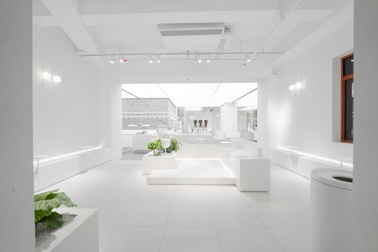 踏进白色的时光之门,步入海派画卷之中。天窗般的顶灯柔和而恬静,将四方照得透亮,实用的中庭空间,凸显四合院式的方正基调。传统石砖铺就出历史韵味,长椅与绿植相间构出层叠纵深,宛如穿梭于弄堂小巷。 Chemex咖啡壶壁灯融着暖意,点亮脑海中记忆的角落,旧时景致与现代的灵动在此自然交错,海派文化的传承与创新在杯杯醇厚中交汇。
