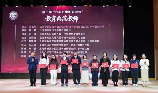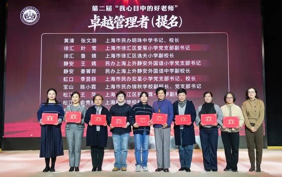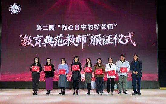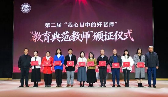 随后,大会为第二届“我心目中的好老师”颁发证书,来自管理岗位和教学一线工作者依次上台领取证书。