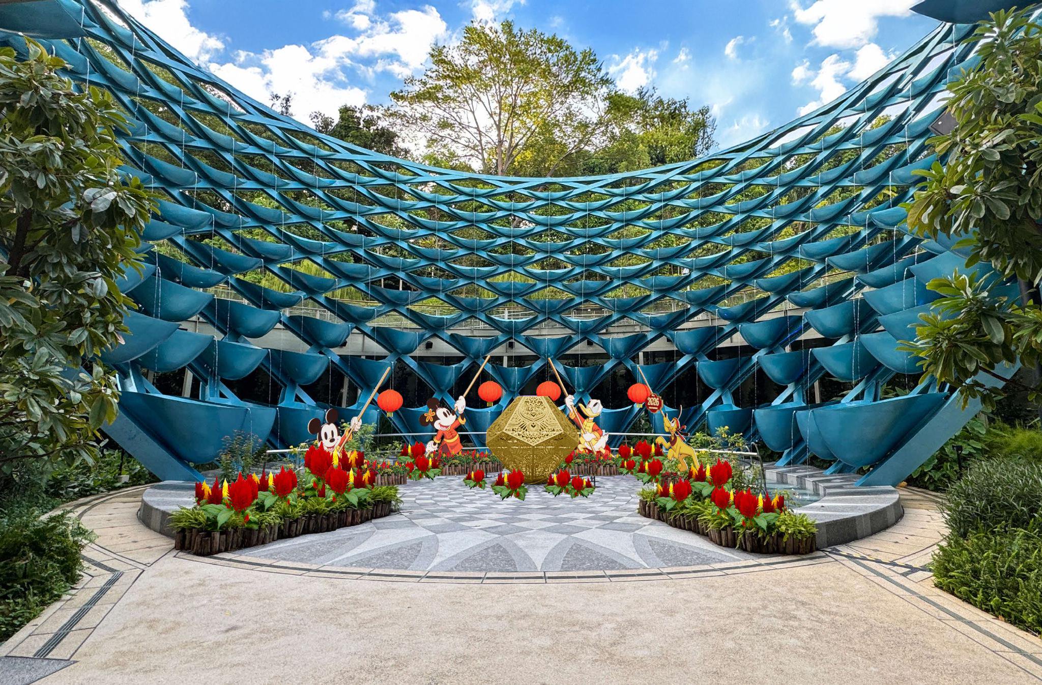 为进一步增添文字祝福的喜庆氛围,在【圣淘沙心之音】步道尽头还设有一对巨型红包装置,米奇与米妮一同现身,将梁文福博士的诗作转化为沉浸式拍照体验。游客可在此与备受喜爱的迪士尼角色一同捕捉吉祥与好运的节日氛围。