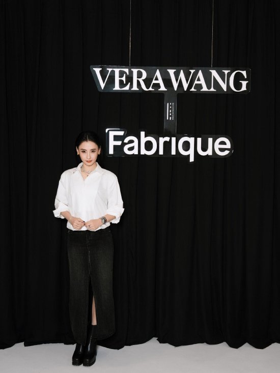张柏芝身着Fabrique x Vera Wang系列廓形白色衬衫与牛仔长裙,精致剪裁透露优雅自信,举手投足释放自在与从容,将该系列设计语言融入自身气韵,让优雅与松弛得以具象呈现。