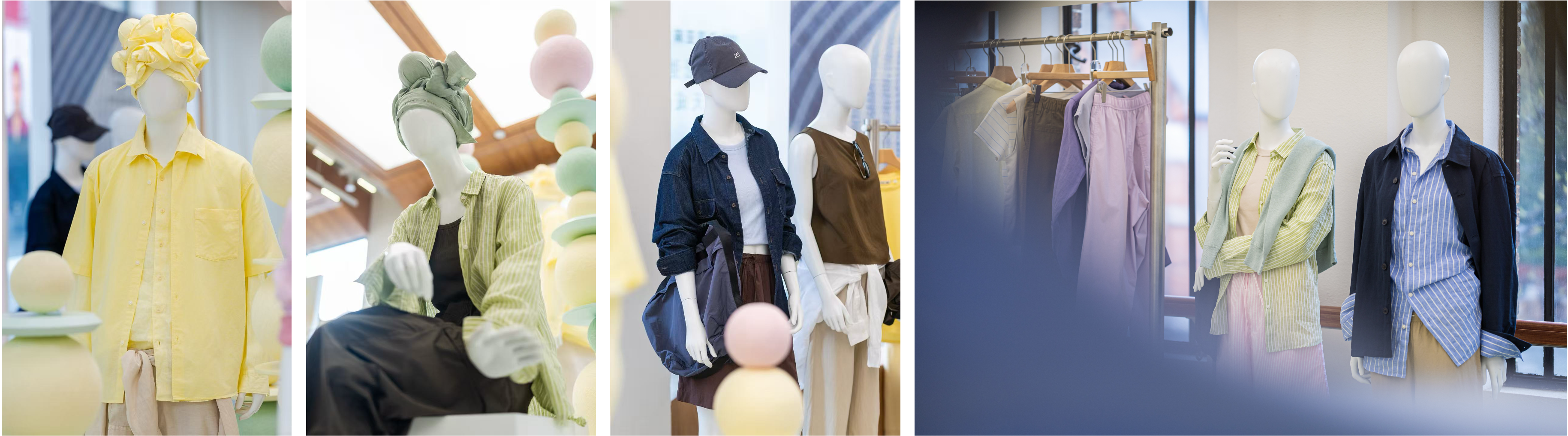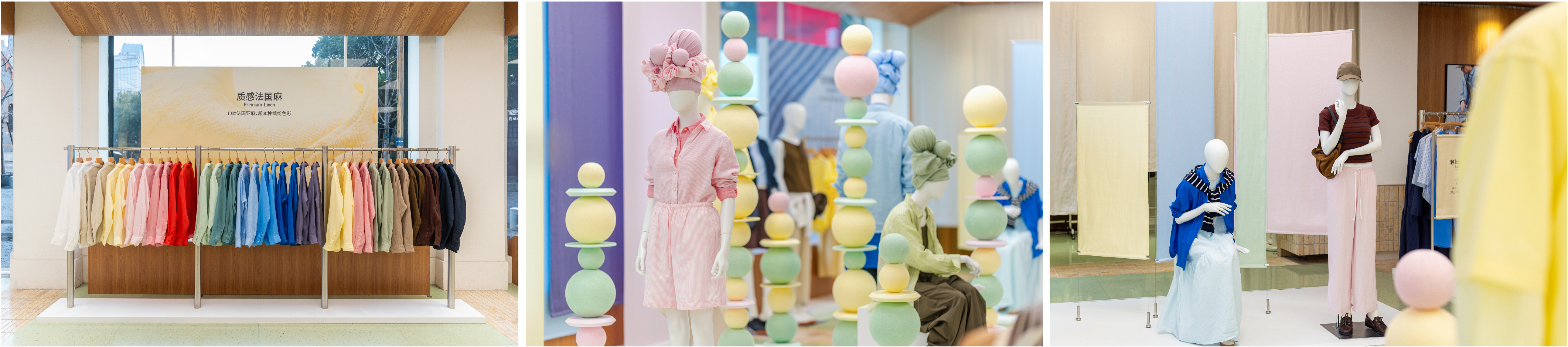 步入一楼,优衣库质感法国麻系列和轻松垂感麻系列相继呈现:质感法国麻甄选法国‘黄金’产区长纤维质感麻,保留天然肌理与流动光泽,触感柔顺细腻,呈现出如呼吸般从容的高级质感; 30多种流动色泽,从低饱和大地调到清透亮色,演绎出春夏高级感松弛美学。轻松垂感麻系列则以丰富色彩与多元设计点亮空间——莫兰迪色系沉稳雅致,清新条纹活力轻盈;得益于考究的混纺比例,面料自带柔滑垂坠感,好打理,让随性时髦真正融入快节奏的都市日常。在这里,亚麻不再是单一材质,而是高质感与多彩表达的全新融合。