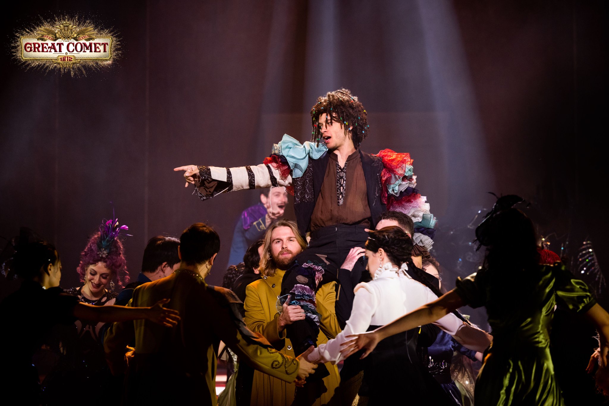 音乐剧《大彗星》改编自托尔斯泰煌煌巨著《战争与和平》中第二卷第五部70页的剧情篇章。在1812年俄法战争的时代背景下,以俄国贵族的生活为切片,讲述了年轻热情的贵族少女娜塔莎在感情与命运的纠葛中不断成长,而步入中年、颓废失意的皮埃尔则在迷茫中寻求人生意义的故事。剧中深刻探讨了爱情、救赎与人性等主题,每个角色都面临着复杂的情感与心理冲突,使整部作品在音乐与戏剧的交织中充满张力。